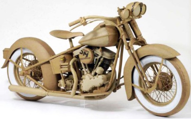 Lifesize motorcycle made entirely of cardboard by artist Chris Gilmour