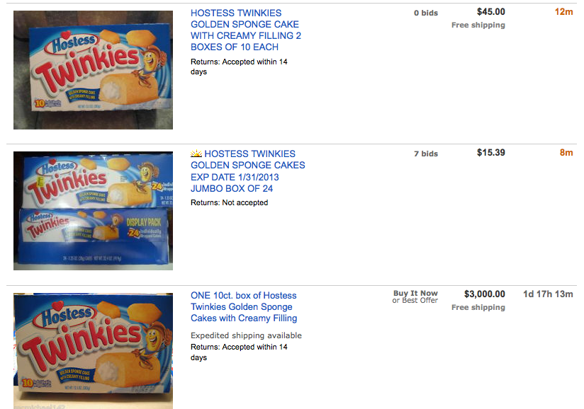 Screen shot 2012-11-22 at 10.03.22 PM Published November 23, 2012 at 824 × 578 in Twinkies are selling for $30 each on Ebay